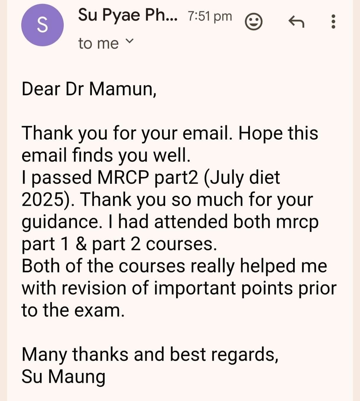 I passed MRCP part-2 written. Thank you, Dr Mamun for your Guidance...